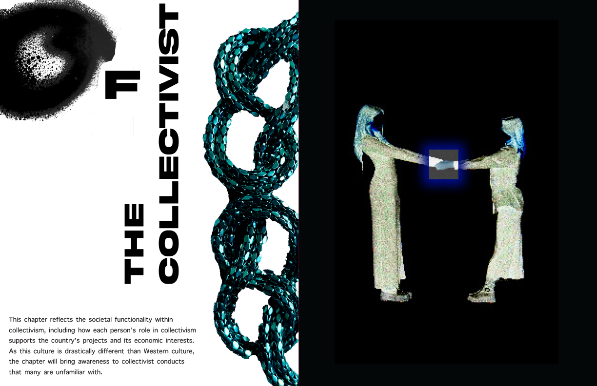 An immersive experience through a book, Captured Angels Magazine presents concepts of Individualism and Collectivism from a solitary and communal perspective, visually referencing positive and negative qualities of both cultural dimensions. Through the series of images and music, one will determine which behavioural pattern enforced by society is of greater value for both a society and an individual. Captured Angels will take you through the exploration of the dichotomous cultures, open to create an experience of your own.