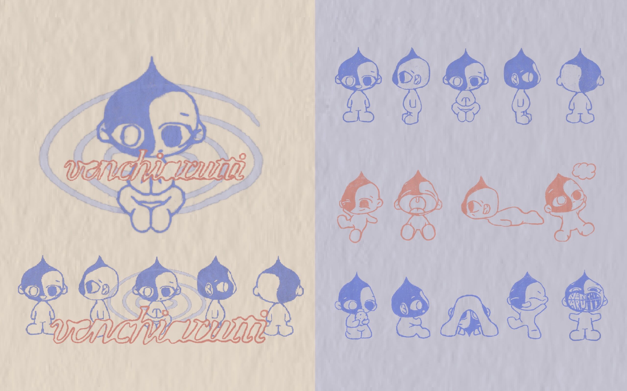 Logo and branding exploration. Developing the personality and character of my brand through a mascot logo; a little meditating monkey with a yin and yang face. Behind him is a spiralling line, and on top of him is my last name/ brand name; Venchiarutti, honouring my family heritage.