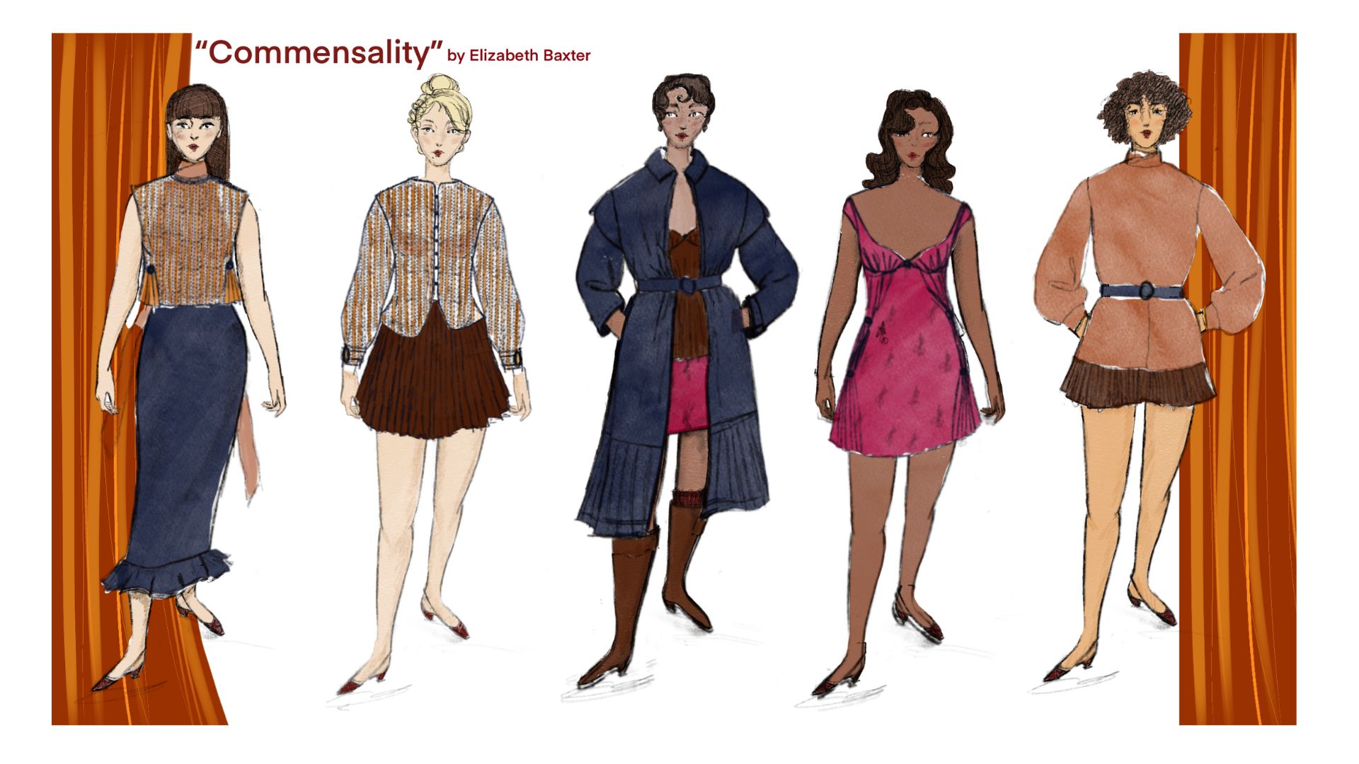 The collection, titled “Commensality”, is inspired by the act of sharing a meal with others. It takes this base concept and questions the importance of this practice, why it’s in decline and the role of clothing in encouraging connection. Visual elements are inspired by the growing trend of casual fine dining restaurants that emphasize ambiance, creative menus and hospitality over the dress codes and stuffy service that characterize traditional fine dining. They position themselves as the antithesis to upscale dining, creating thoughtfully curated, and genuine experiences. My collection borrows the principles of this model to explore the idea of creating for the purpose of fostering connection, and redefining what makes fashion aspirational. In the same way casual fine dining rejects the antiquated rules of the past, the designs move away from traditional evening wear offering instead “Modern Dinner-wear”. It takes informal styles and dresses them up with impactful details and bold, fabric choices, to reimagine what it means to get dressed up.