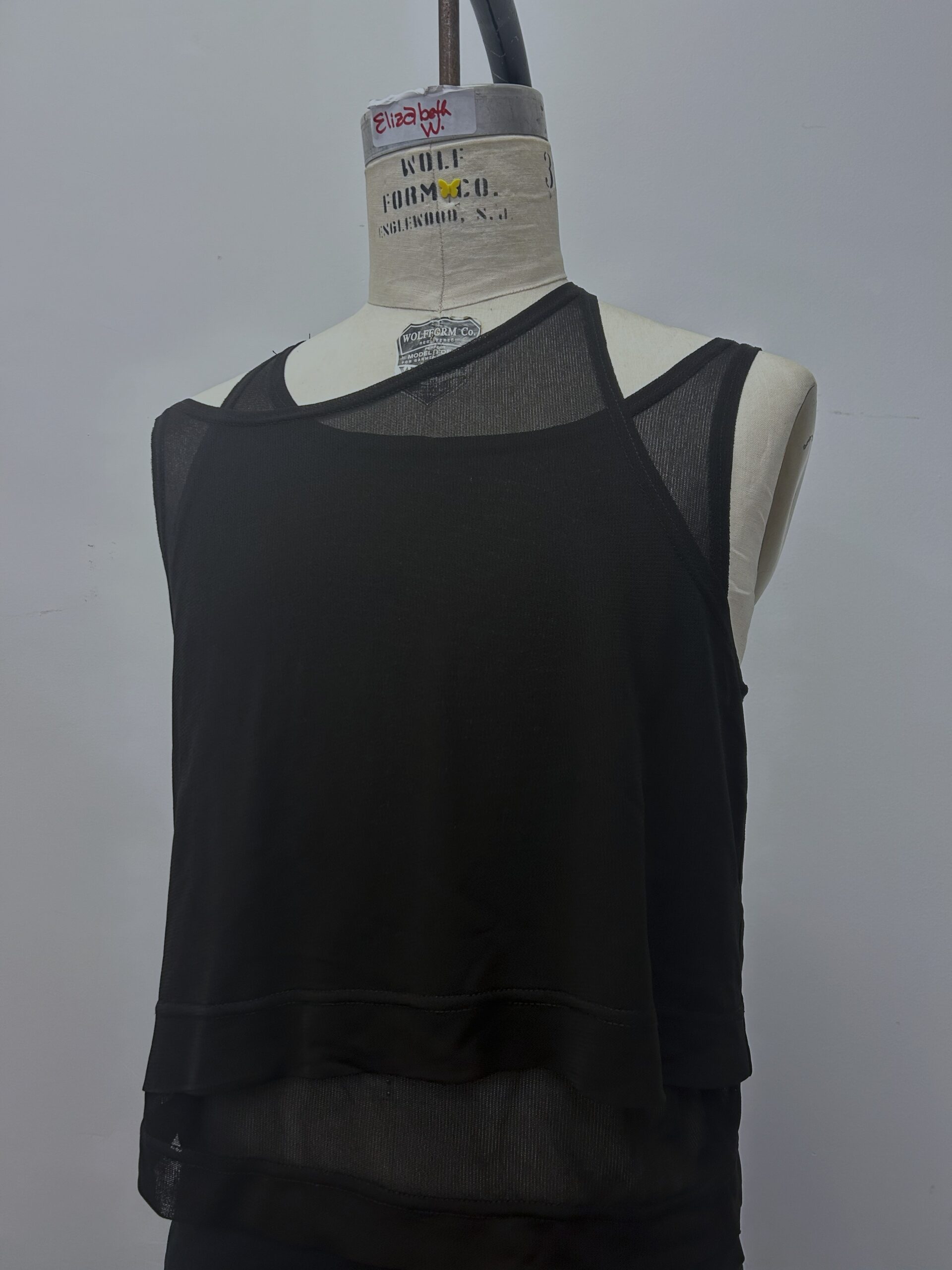 Two - layered sheer off the shoulder tank top.