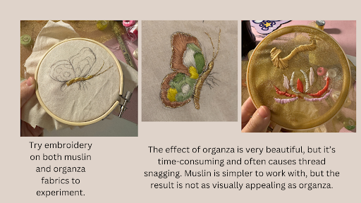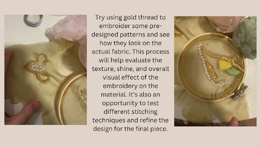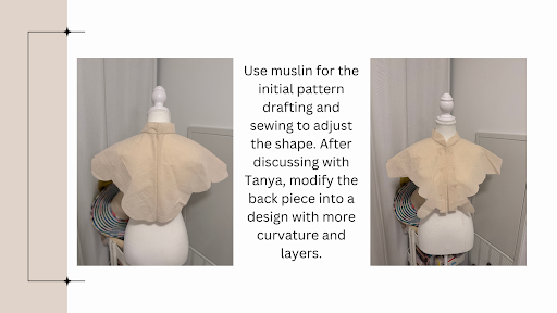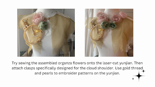 For my capstone project, I would like to focus on three key themes: self-love, self-identity. Based on the themes, I get lots of inspiration from Zhou Dunyi’s famous essay, “Ai Lian Shuo” (On the Love of the Lotus), and the metaphor of “transforming from a cocoon into a butterfly.” Both represent self-discovery, growing up under hard situations, and keeping pure, which fits with my themes of self-love and self-identity. The main garment I would like to work on is Yunjian, a traditional accessory called cloud collar or cloud shoulder. It is usually worn on the shoulder or top of the neck. In my design, Yunjian represents protection, inclusion, and personal identity. I chose to work on this accessory because it is around the shoulder. When people hug someone, they will feel secure and comfortable. I hope this design can bring more warmth and protection. I added Ronghua, a handicraft of China’s intangible cultural heritage for decoration. I want to make a Yunjian that is not only a decoration but also represents the heritage of art and ancient aesthetics.