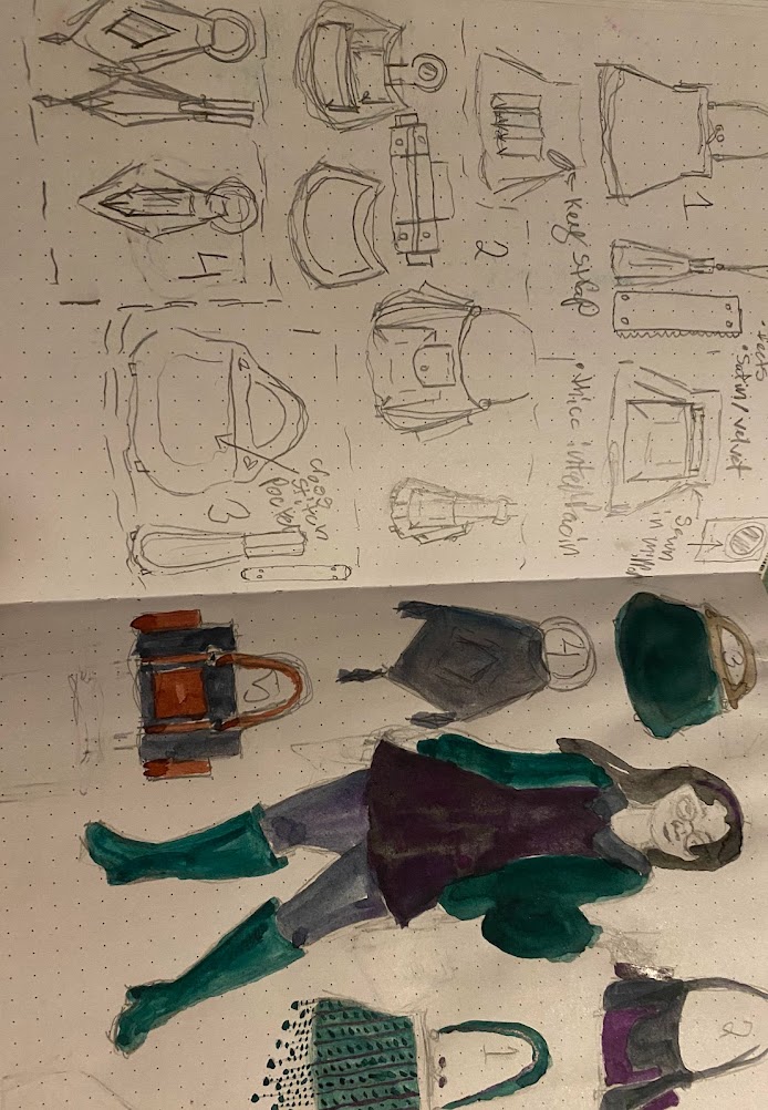 Primary sketch for one of the bags and the person it was being made for, Rebbeca.