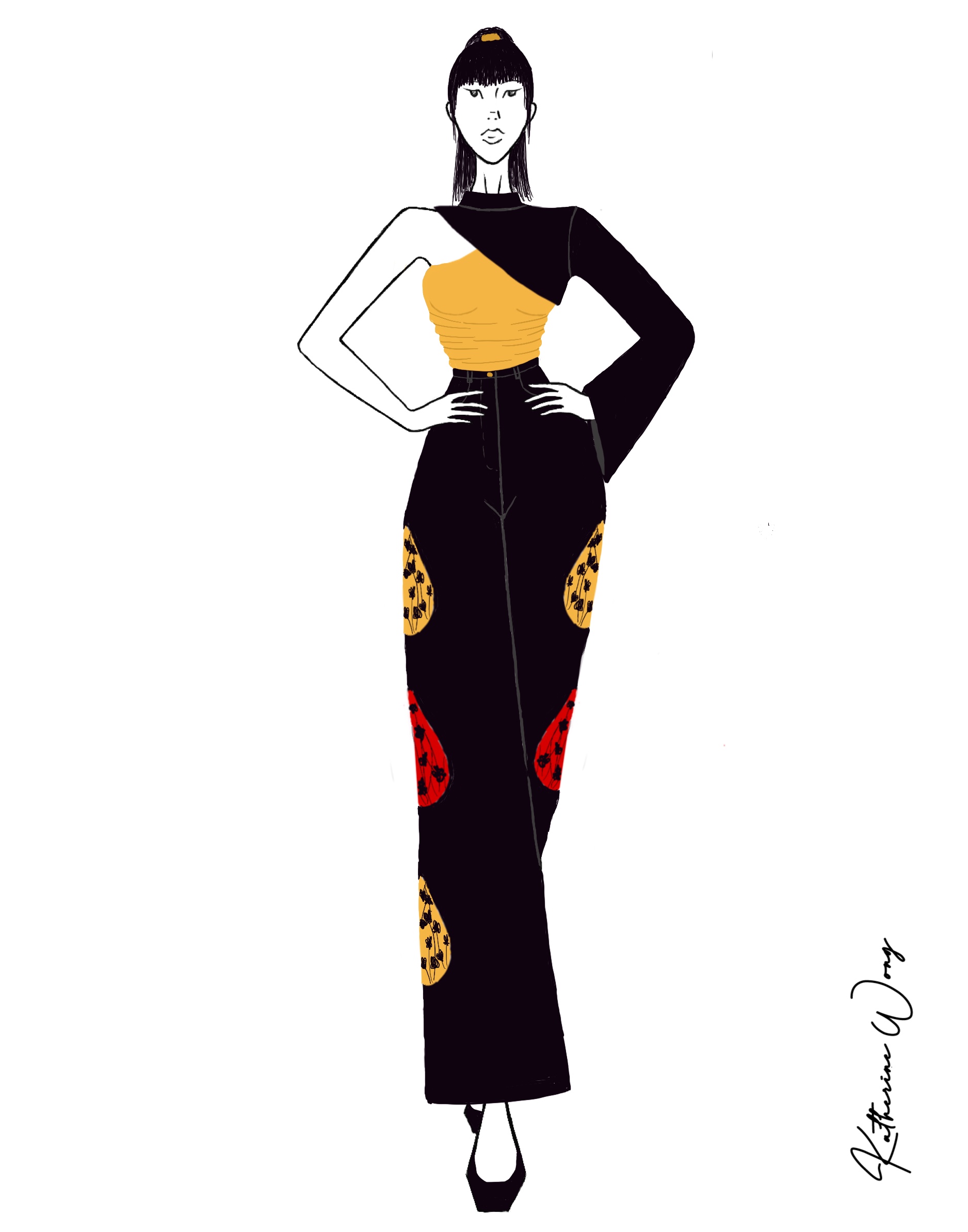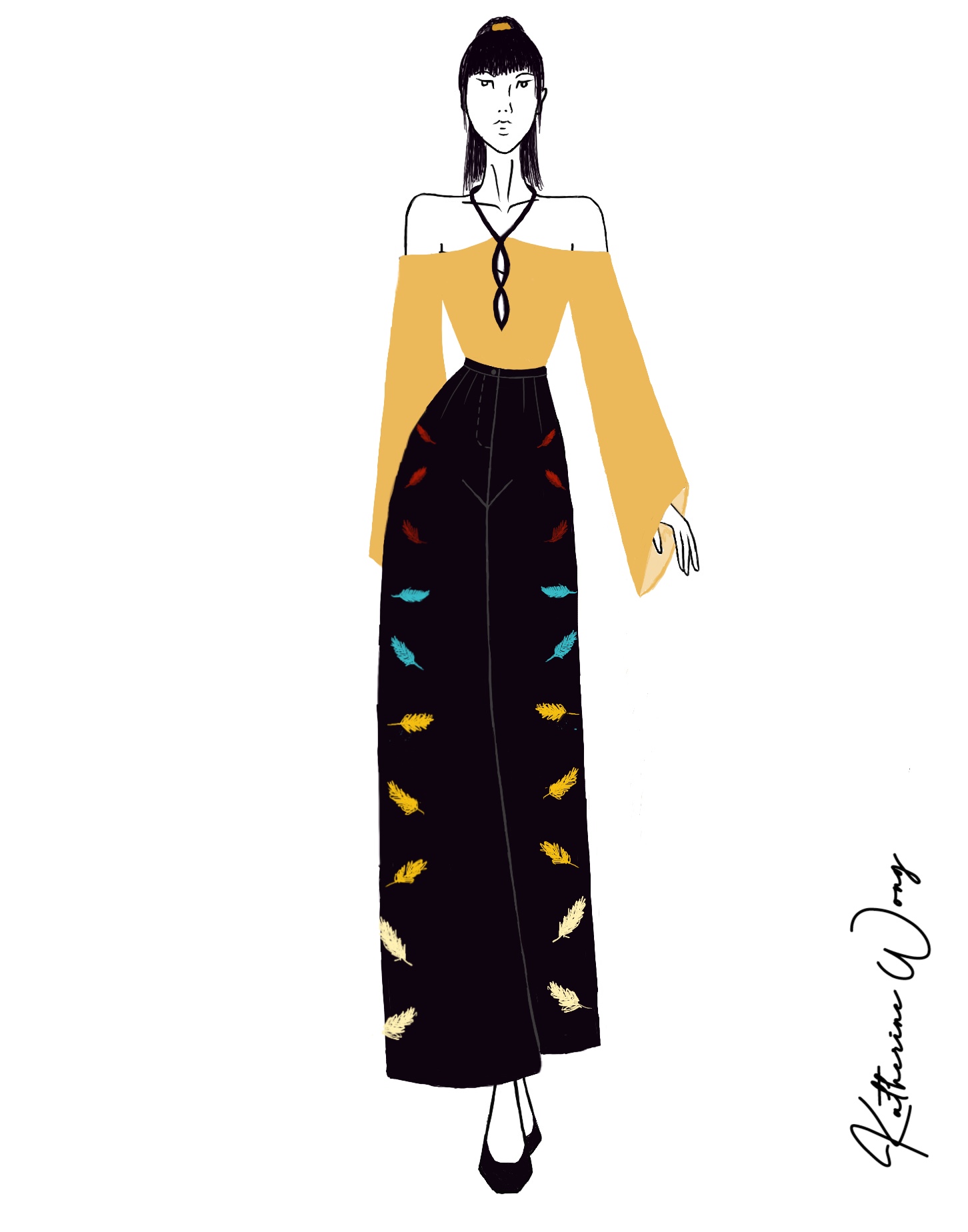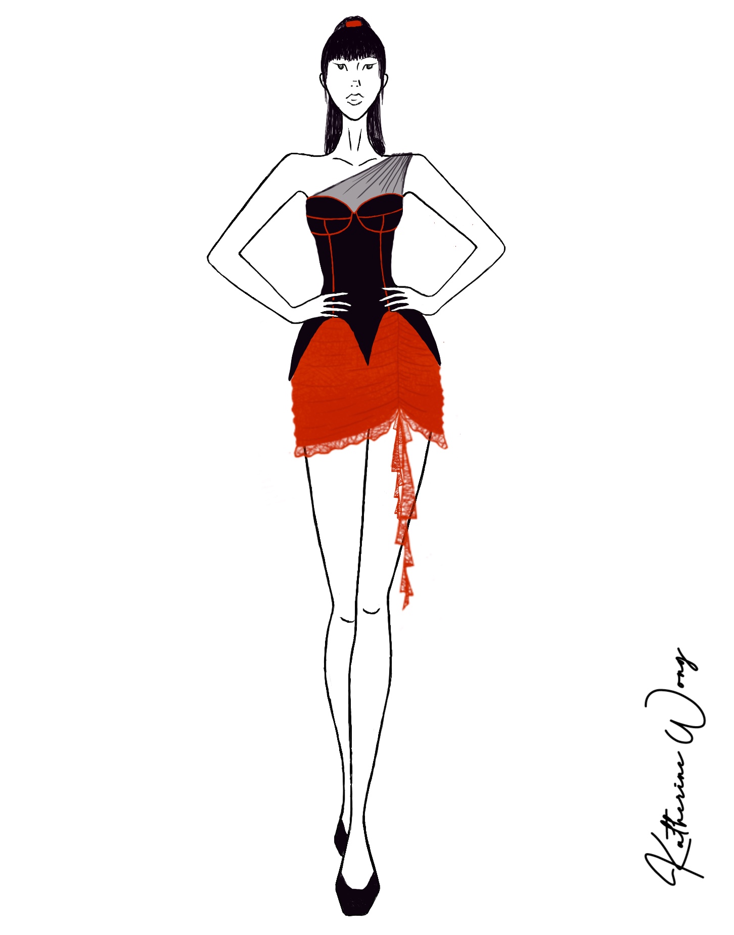 My collection is called Fèng Měi(凤美), which is my Chinese name meaning “Beautiful Phoenix”. This collection was inspired by the Chinese mythological Phoenix FengHuang. FengHuang is a very auspicious creature in Chinese mythology and is said to be a symbol of virtue, righteousness, courtesy, benevolence, and faith. Part of the mythology of the Chinese Phoenix is that it is not born from the ashes of fire like the western Phoenix. The Chinese Phoenix actually descends from Heaven and does so in a time of harmony and peace within an empire. I want this collection to represent the same harmony and peace between the Chinese community and other communities.